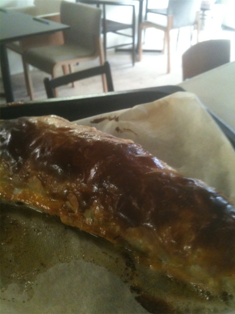 チェコの定番おやつシュトゥドゥーデル、本来はリンゴを入れたスタイルですが、今回はほうれん草とソーセージでフィリングを作りました。 リンゴの方はチェコ人なら一人で一本は食べてしまう。とても、あっさりしたおやつなのです。 ドイツやオーストリアにも同じような名前のものがあるそうです。 戦争などで人の行き交いが激しいかった時代にそうなったのではないかなぁ。とチェコ人は申しておりました。 |
